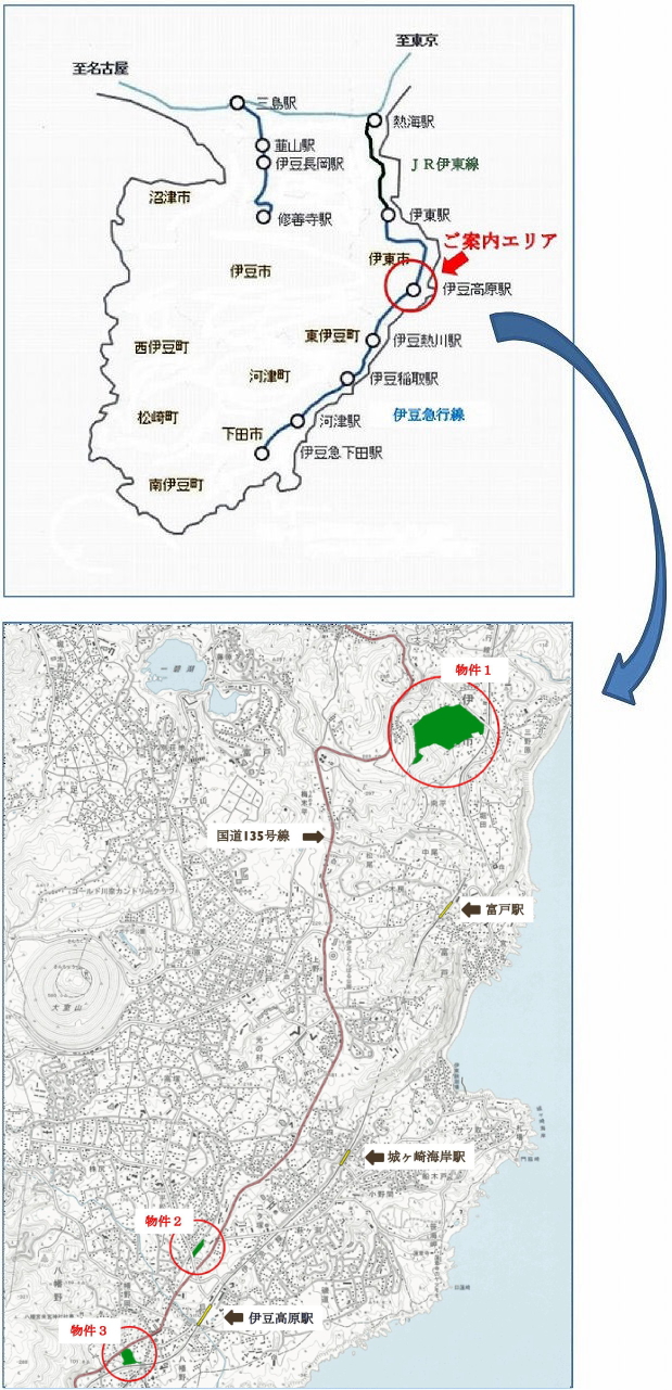物件1 (広大な原野) 物件2 (伊豆高原桜並木近く) |